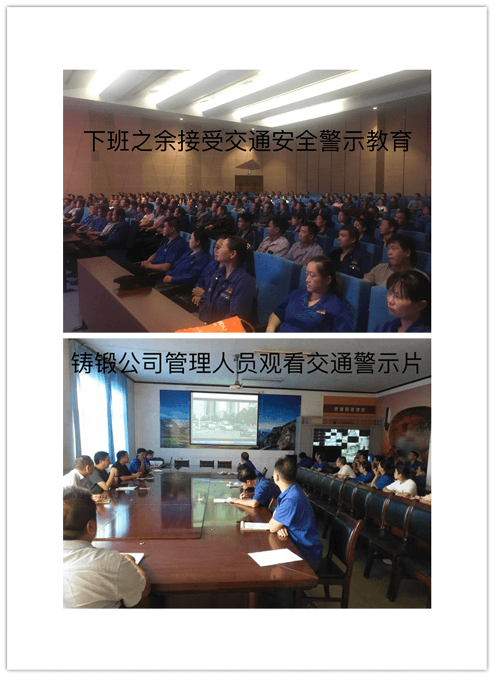 開展警示片宣傳教育活動。集團(tuán)公司按單位分三次組織1000余名員工觀看交通事故警示教育片,集團(tuán)公司子公司林鋼、鑄鍛也積極按照方案要求組織收看教育片,同時各單位還利用本部門的微信工作群進(jìn)行轉(zhuǎn)發(fā)收看,達(dá)到警示教育全面覆蓋之目的。
